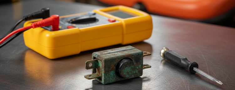 • Check battery voltage: Use a multimeter to verify battery voltage is above 12.4V. Below 12.4V? Charge or replace battery first before diagnosing switches. Above 12.4V? Continue to next step.