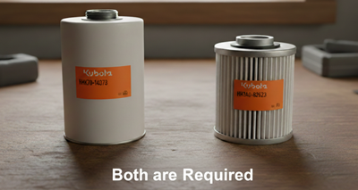 The L2501 HST requires two filters — confirm by checking your parts diagrams against your serial number. The HST filter is HHK70-14073 and the hydraulic return filter is HH3A0-82623 on gear models. Order both filters before every 200-hour service and replace both at the same time. Do not rely on the dealer parts counter to tell you how many filters you need — verify with the parts diagram for your specific serial number. See our Kubota hydraulic filter replacement guide for step by step procedures.